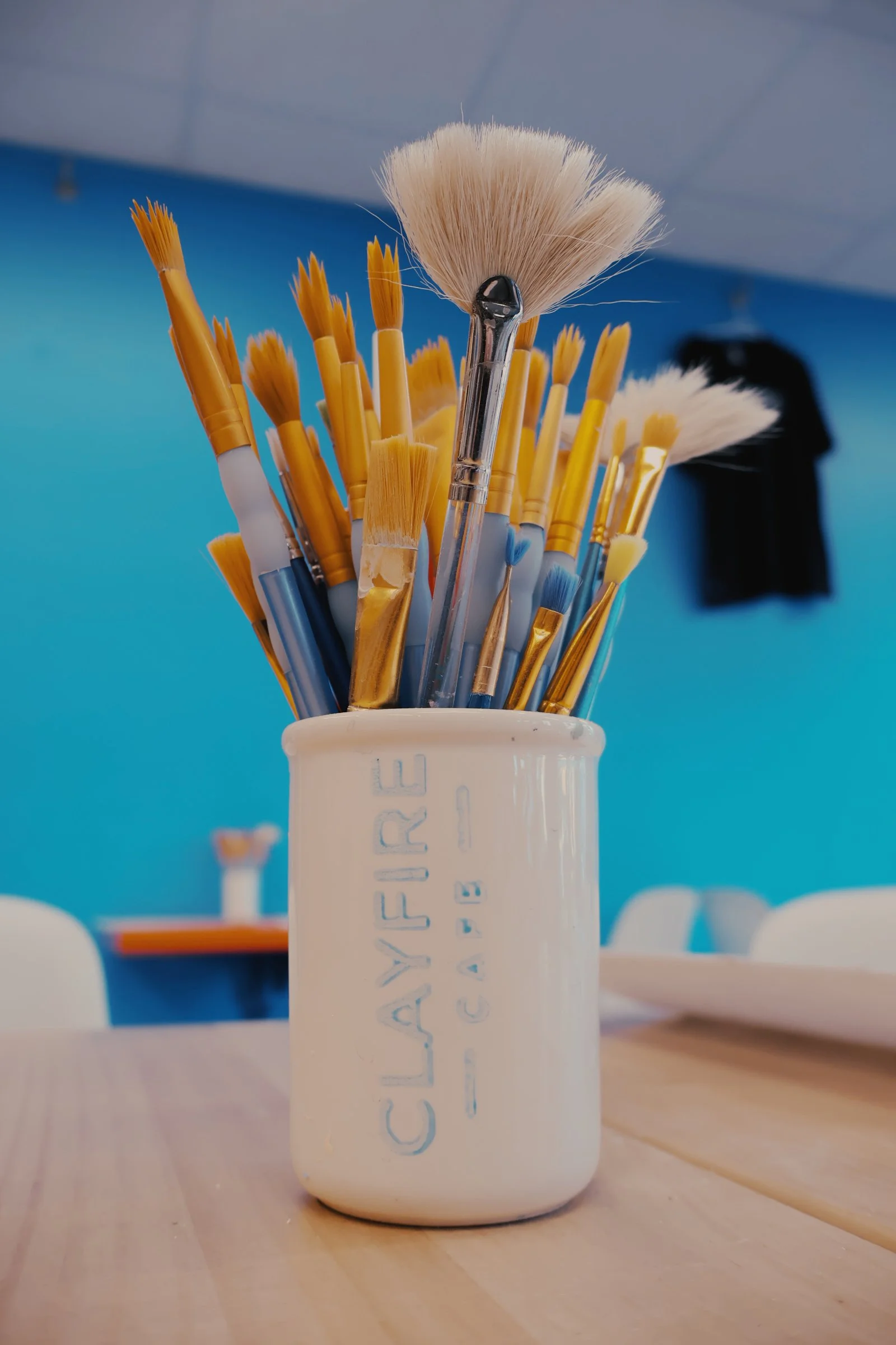 Outside of clay painting, we offer an assortment of coffee (served hot or iced), tea, apple cider, and hot chocolate.